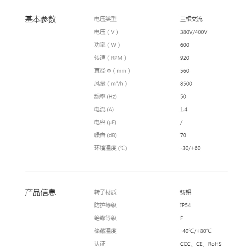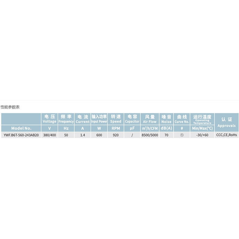 • YWF.B6T-560-243AA20全新560系列后傾離心風機低噪音大
