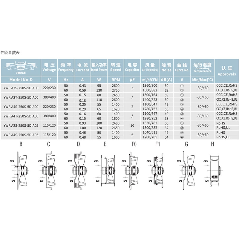 YWF.A2S-250S-5DIA00全新原裝防潮高效節(jié)能IP54外轉(zhuǎn)子電