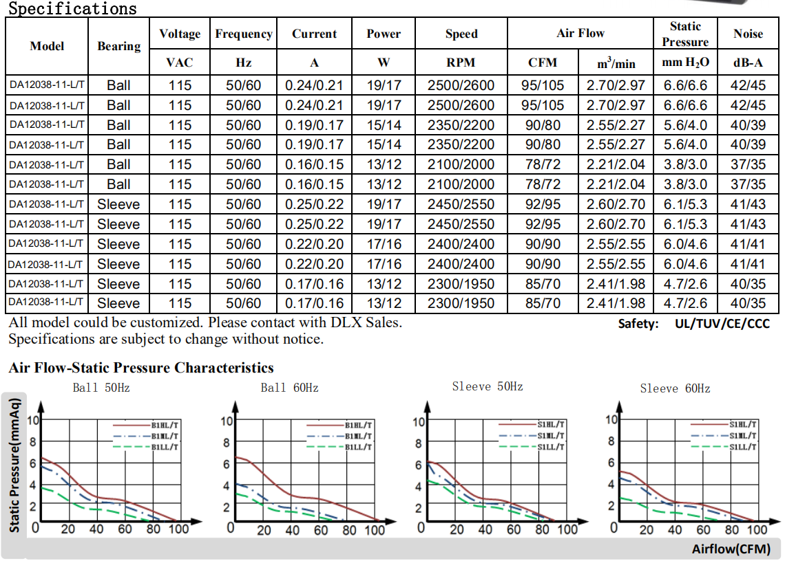 120 x 120 x 38mm DA12038 115/220V(七葉高風壓版)軸流風機12厘米風扇