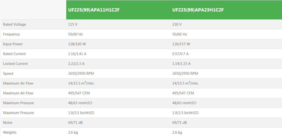 • UF225(99)APA全新原裝臺灣正品福佑小型離心風(fēng)機排煙機蝸殼注塑機變頻器散熱