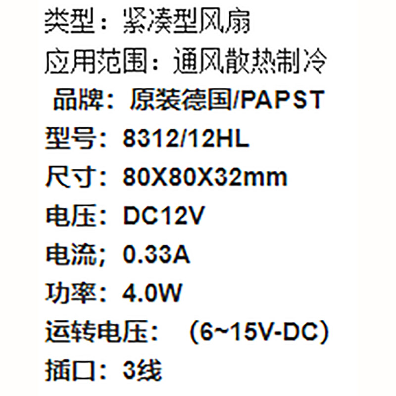 全新原裝ebmpapst風機8312-12HL德國EBM依必安派特風機壁爐DC風扇